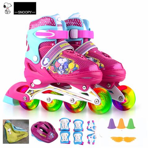 - สินค้าครบเซ็ต คุ้มค่ามาก ลายหมาน้อยสนู้ปปี้น่ารัก ประกอบด้วย รองเท้าสเก็ต 1 คู่ สนับเข่า 1 คู่ สนับข้อศอก 1 คู่ สนับมือ 1 คู่ หมวกกันน็อค 1 ใบ ปีกนกตกแต่ง 1 คู่ กรวยฝึก 4 กรวย และกระเป๋าโรลเลอร์เบลด 1 ใบ