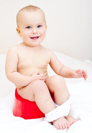 การฝึกระบบขับถ่ายให้เป็นเวลา การให้กำลังใจ คำชมเชย มีส่วนสำคัญมากในการฝึกขับถ่ายให้ลูก เพราะธรรมชาติ มนุษย์เราไม่ชอบการ บีบบังคับ เด็กก็เช่นกัน การให้กำลังใจ ผ่อนหนักผ่อนเบา ให้รางวัลจะช่วยทำให้ เด็กๆร่วมมือมากขึ้น การขับถ่ายคืออะไร ธรรมดาเด็กทารกเมื่อปวดท้องอุจจาระ ก็จะปล่อยออกมากองในผ้าอ้อมแล้วทำหน้าพิลึกๆ แกยังควบคุมระบบนี้ไม่ได้ เพราะระบบประสาท ไม่สมบูรณ์พอ เมื่อโตขึ้นเด็กจะต้องหัดนั่งกระโถน เมื่อรู้สึกปวดจะถ่ายอุจจาระ รู้จักบอกว่า จะถ่าย รู้จักกลั้นเมื่อคุณแม่ยังเตรียมกระโถนไม่ทัน เด็กจำทำได้สำเร็จ เมื่อเขาควบคุมระบบอัตโนมัติ ของร่างกายได้ และเขาจะมีความภาคภูมิมาก มีความเชื่อมั่นในตนเองมากขึ้น มีความพอใจที่บริเวณทวารหนักสะอาด ไม่เลอะเทอะเหมือนก่อนๆ รับประทาน และละเลงอุจจาระด้วย ถ้าคุณแม่เผลอๆ เพราะมันนุ่มๆ อุ่นๆ ดี เด็กอายุ 1 ปีครึ่ง จะเริ่มทำสิ่งนี้ได้ ซึ่งจะเป็นพื้นฐานของความสะอาดทั้งร่างกาย เสื้อผ้า บ้านช่อง ในชีวิตของเขาต่อไป เขาจะทราบว่าสิ่งใดควรทำ สิ่งใดไม่ควรทำ รู้จักหน้าที่ รู้จักการทำงาน เป็นระเบียบ ดังนั้น การฝึกฝนถ่ายอุจจาระเป็นที่เป็นทาง จึงนับว่าเป็นบทเรียนบทหนึ่งขั้นพื้นฐาน ของเด็กในการทำงานร่วมกันระหว่างแม่ลูกอย่างมีสันติ คุณหนูพร้อมฝึกขับถ่ายเมื่อใด การหัดถ่ายอุจจาระขึ้นกับความพร้อมขอลูกหรือไม่ ในปีแรกนั้น คุณหนูไม่รู้เนื้อรู้ตัวเกี่ยงกับท้องไส้ ของตัวเอง ยังควบคุมการขับถ่ายไม่เป็น กลั้นไม่เป็น เมื่อลำไส้ส่วนทวารหนักมีของเต็ม เมื่อไรจะมีความรู้สึกอยากถ่ายอุจจาระเกิดขึ้น หรือหลังดูดนมเต็มกระเพาะ จะมีการกระตุ้นของ ทางเดินอาหารทั้งหมด ทำให้มีการเคลื่อนไหว ของลำไส้ และเด็กก็ถ่ายอุจจาระได้ ร่างกายจะมีกลไก ทำให้กล้ามเนื้อท้องแฟบลง และกดลงบนลำไส้ทำให้ถ่ายอุจจาระ โดยที่เด็กไม่รู้เรื่องอะไรเลย และไม่ได้ตั้งใจด้วย ในปีแรก เด็กยังไม่พร้อมนักสำหรับการฝึกถ่ายอุจจาระ แต่ดังที่เราทราบดีว่าหลังดูดนมไป 5-10 นาที (มื้อเช้า) เด็กจะถ่ายอุจจาระได้ คุณแม่บางคนขี้เกียจล้างอุจจาระที่เปื้อนผ้าอ้อม ทุกๆเช้า เพราะเหม็น เบื่อเต็มที ก็อาจจะมีกลวิธีโดยจับคุณหนูนั่งกระโถนหลังนมมื้อเช้า 5-10 นาที จะทำได้เมื่อคุณหนูนั่งได้แล้ว คือ ประมาณ อายุ 7-9 เดือน การนั่งนี้ก็เพื่อให้มีโอกาส รับก้อนอุจจาระที่หลุดออกมาพอดี ภายหลัวที่คุณแม่ทำเสมอๆ สัก 2-3อาทิตย์ ระบบประสาทจะเคยชิน คุณหนูจะรู้ว่าพอได้นมสักพัก จะมีอะไรเย็นๆ มารอนั่งแล้วแกก็จะขับถ่ายโดยอัตโนมัติ โดยตัวเขา