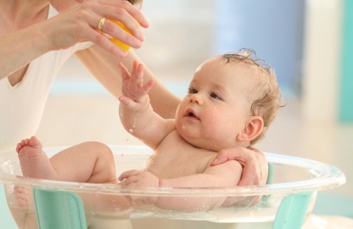 วิธีอาบน้ำเด็กแรกเกิด การอาบน้ำและการสระผมทารก เด็กแรกเกิด เดือน อาบวันละ 1 ครั้ง + เช็ดตัว 1 ครั้ง สระผม 1 ครั้ง หรือตามสภาพอากาศ ฤดูหนาวควรวันละ 1 ครั้งเท่านั้นค่ะ อายุมากกว่า 1 เดือน อาบวันละ 2 ครั้ง เช้า + เย็นค่ะ สระผม 1 ครั้ง การอาบน้ำสำหรับเด็กทารกถือว่าเป็นกิจวัตรประจำวัน เพราะว่าเมืองไทยเป็นเมืองร้อนจึงต้องอาบน้ำทำความสะอาดให้ลูกทุกวัน เพื่อป้องกันผดผื่นคันทั้งหลายที่จะมากล้ำกรายผิวลูก - เตรียมของก่อนอาบน้ำ : ผ้าเช็ดตัว สบู่เด็ก แชมพูสระผม น้ำอุ่น ฟองน้ำ สำลี แป้งเด็ก อ่างอาบน้ำ ผ้าอ้อม เสื้อตัวใหม่ แล้วหยิบทุกอย่างมาไว้ใกล้ๆ มือเพื่อความสะดวก - ผสมน้ำอุ่นสำหรับอาบน้ำให้ลูก ใช้ข้อศอกจุ่มน้ำเพื่อทดสอบดูว่าน้ำอุ่นกำลังดีหรือยัง - ถอดเสื้อและผ้าอ้อมออก ห่มลูกไว้ด้วยผ้าเช็ดตัวขณะเช็ดหน้าให้ลูก วางลูกไว้บนตัก - ใช้สำลีชุบน้ำอุ่นเช็ดหน้า ตา และหูให้ลูก - สระผมให้ลูกโดยใช้มือข้างหนึ่งประคองศีรษะไว้ แล้วใช้แชมพูสระผมเด็กสระผมให้กับลูก - ซับผมลูกให้แห้ง จากนั้นแก้ห่อผ้าที่ห่มตัวลูกออก - ใช้ฟองน้ำชุบน้ำสบู่เด็กเช็ดตามง่ามก้น ซอกคอ ซอกแขน ข้อพับต่างๆ ของลูก - จากนั้นใช้สบู่เด็กฟอกทำความสะอาดให้ทั่วตัวลูก (แต่ถ้าคุณพ่อคุณแม่อาบน้ำให้ลูกจนชำนาญแล้ว จะถูสบู่ให้เจ้าตัวเล็กในอ่างอาบน้ำเลยก็ได้) - ค่อยๆ หย่อนตัวลูกลงในอ่างอาบน้ำ อย่าให้ลูกตกใจ แล้ววักน้ำล้างตัวและตามง่ามขา ข้อพับต่างๆ ของลูกให้สะอาด - เอาลูกขึ้นจากอ่างอาบน้ำ ซับตัวลูกให้แห้งสนิท แล้วทาแป้งตามข้อพับและก้นให้ลูก - ใส่เสื้อผ้าให้หนูน้อยได้แล้ว วันแรกๆ ที่พาลูกกลับบ้าน หากยังไม่มั่นใจว่าจะอาบน้ำให้ลูกได้ ใช้วิธีเช็ดตัวลูกก่อนก็ได้ หรือหากลูกวัยแบเบาะอาบน้ำวันละ 2 ครั้ง เช้าเย็นก็เพียงพอแล้ว สำหรับลูกวัยเริ่มคลานอาจซุกซนจนตัวมอมแมม มือเลอะเทอะ จึงต้องเพิ่มการทำความสะอาดให้ลูกมากขึ้น โดยเฉพาะในช่วงอากาศร้อน อาจจะอาบน้ำให้ลูกเช้า กลางวัน เย็นเลยก็ได้อย่างไรก็ตามอย่าเผลอทิ้งลูกไว้ในอ่างแม้แต่แวบเดียวก็ตาม เพราะน้ำตื้นๆ ก้นกะละมังก็สามารถทำให้ลูกจมน้ำได้ เนื่องจากลูกยังไม่รู้จักช่วยตัวเองเมื่อหน้าคว่ำลงไปในอ่าง หลังจากอาบน้ำเสร็จ ขั้นตอนต่อไปคือ การทำความสะอาดส่วนต่างๆ ของร่างกายทารก ตั้งแต่ศีรษะจรดปลายเท่้า ตามนี้ค่ะ - ตา ใช้สำลีชุบน้ำต้มสุก หรือ 0.9% Normalsaline ซื้อได้ตามร้านขายยาทั่วไป เช็ดขี้ตาจากหัวตาไปหางตา เมื่อเปลี่ยนข้างเช็ดต้องใช้สำลีก้อนใหม่ทุกครั้ง จากนั้นใช้กระดาษชำระหรือผ้านุ่มสะอาดซับให้แห้ง - หู เช็ดหูซ้าย-